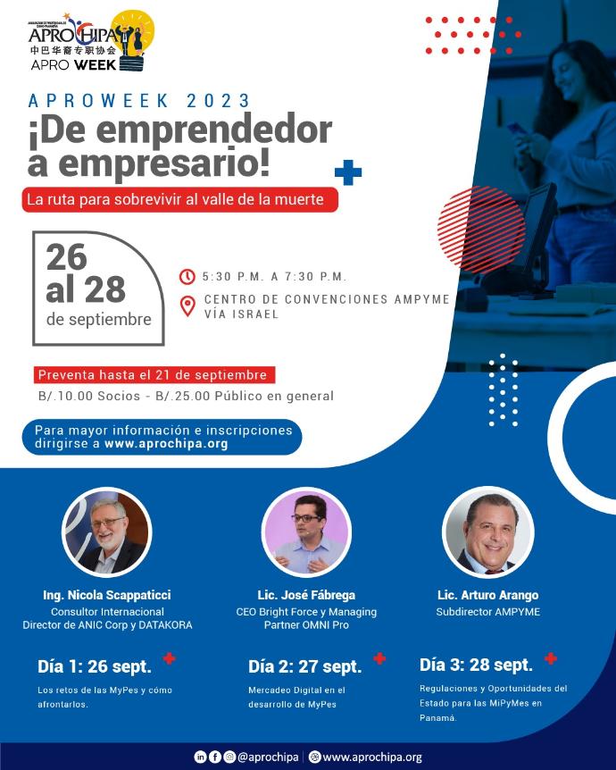 lanza su evento insignia en el año 2020 dentro del pilar de Desarrollo Profesional, con el nombre APROWEEK, buscando ser la convención anual de encuentro profesional y ejecutivo en Panamá para continuar apoyando al desarrollo y educación del país. Esta iniciativa fue liderara por la Mgtr. Sandra Chiam, presidenta de la Junta Directiva 2020 - 2021, quien junto a su equipo de gestión marcaron un hito nuevo en la historia de la asociación al crear un evento insignia de índole profesional. Se les reconoce el arduo trabajo ya que aún en medio de la pandemia del Covid-19 no bajaron la guardia ni su trabajo y lanzaron esta gran iniciativa.