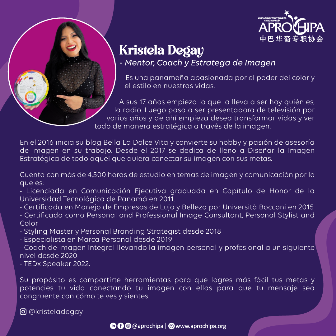 Es Coach certificada del International Coaching Institute (ICI) - International Coaching Community (ICC) y actualmente ocupa el cargo de Sub Secretaria Técnica de Recursos Humanos en el Órgano Judicial de Panamá.