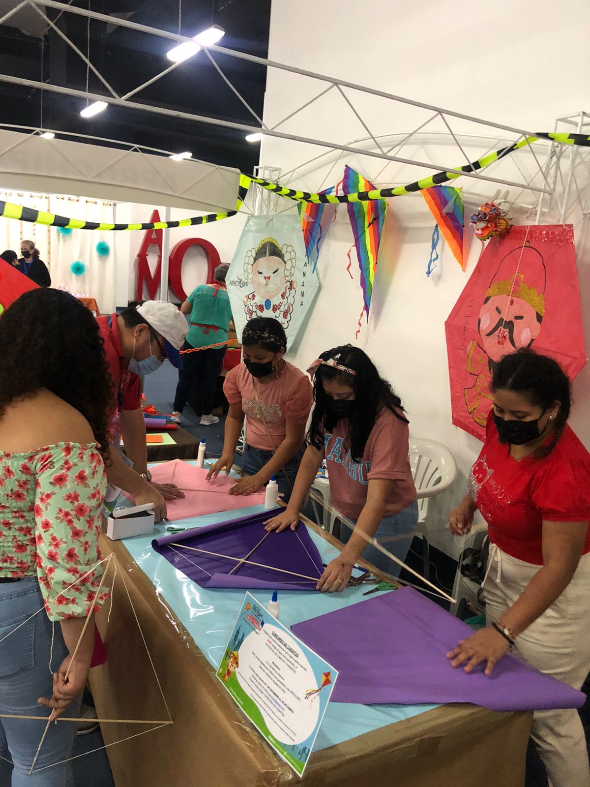 Socios y voluntarios en los talleres de cometas presenciales previos al XXII Festival de Cometas y Panderos ejecutados en Altaplaza Mall y en el Centro Cultural Chino Panameño.