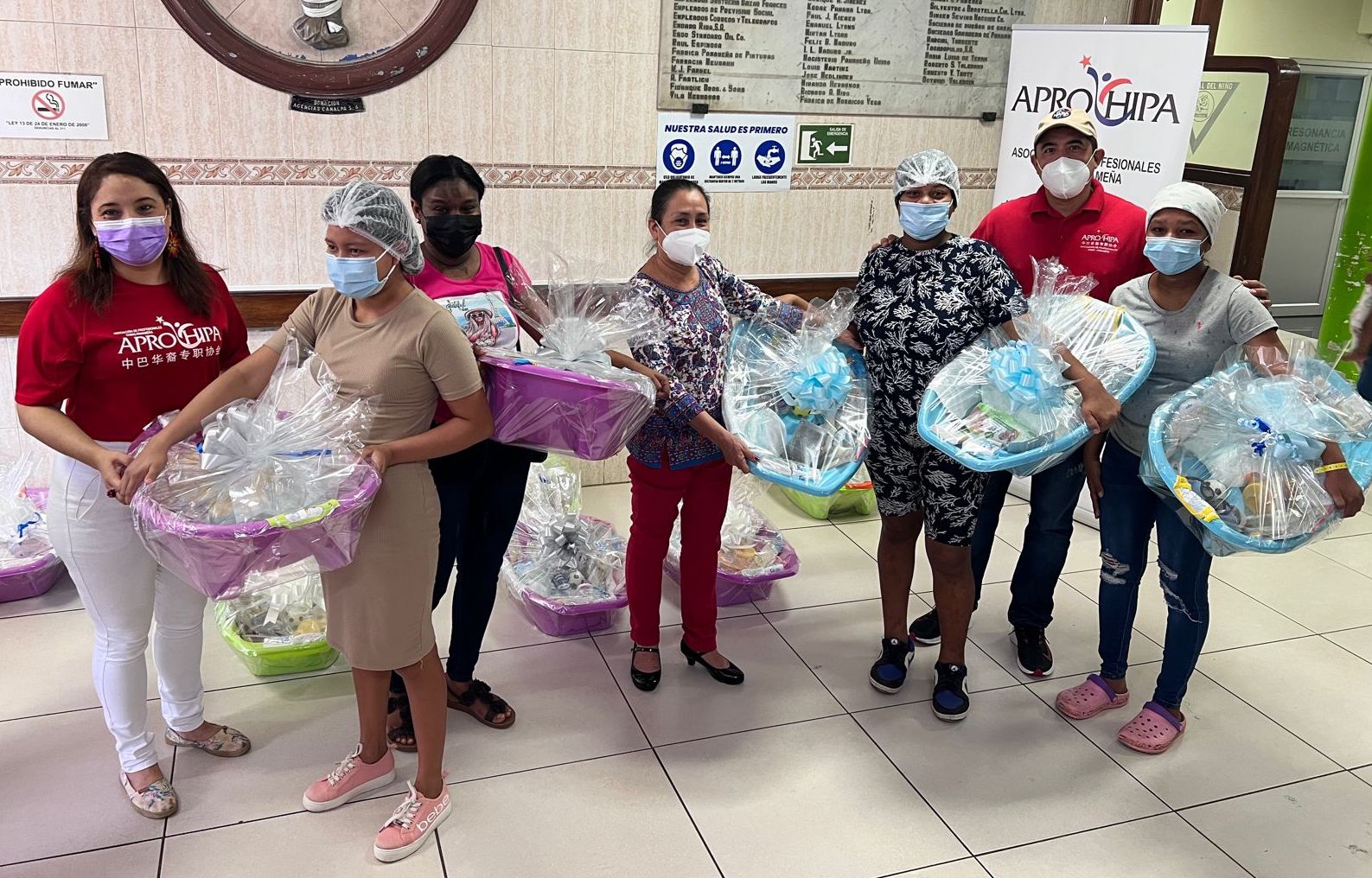 Entrega de canastillas para conmemorar el aniversario #55 de APROCHIPA. Lugar de entrega: Sala de Maternidad y de Neonatos del Hospital del Niño.